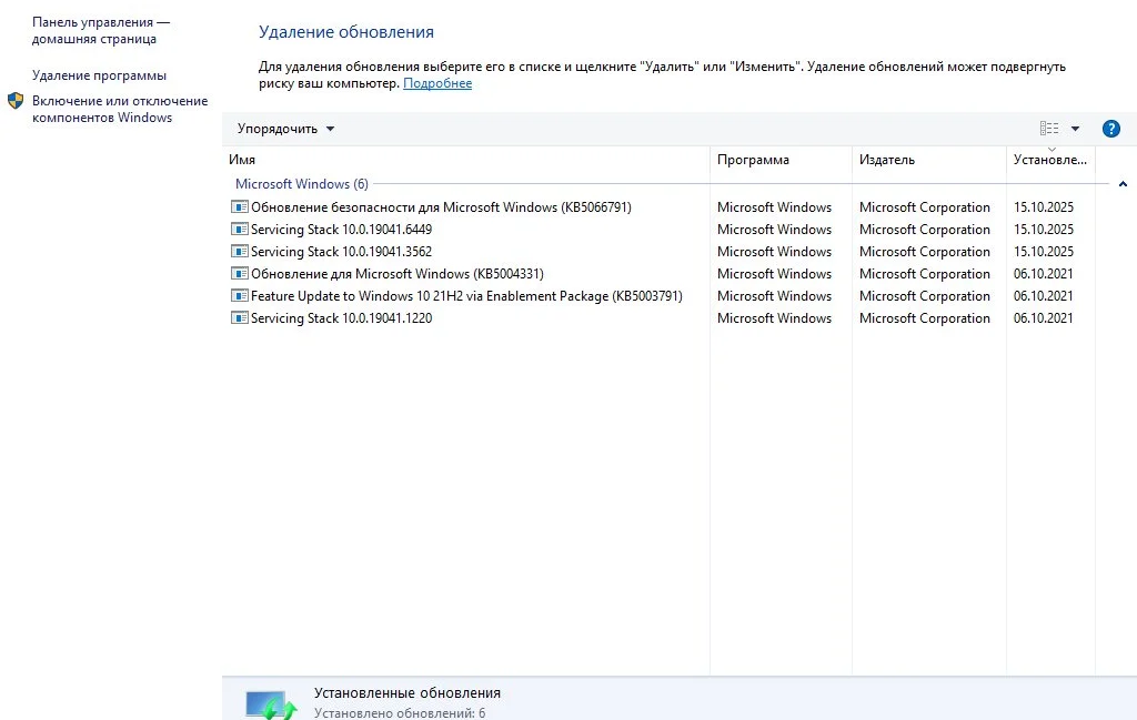 • KB5031539 — обновление стека обслуживания от 10.10.2023