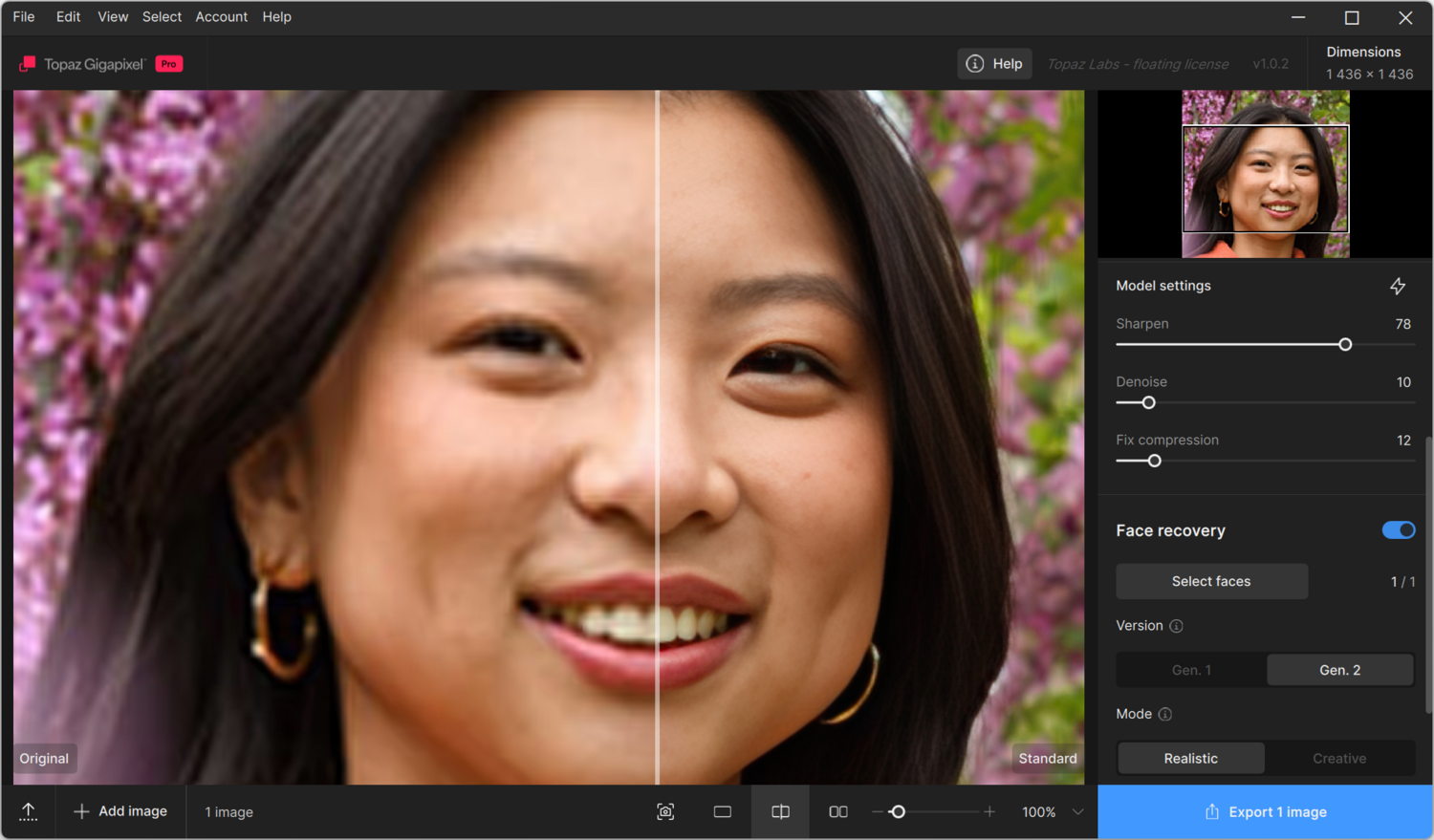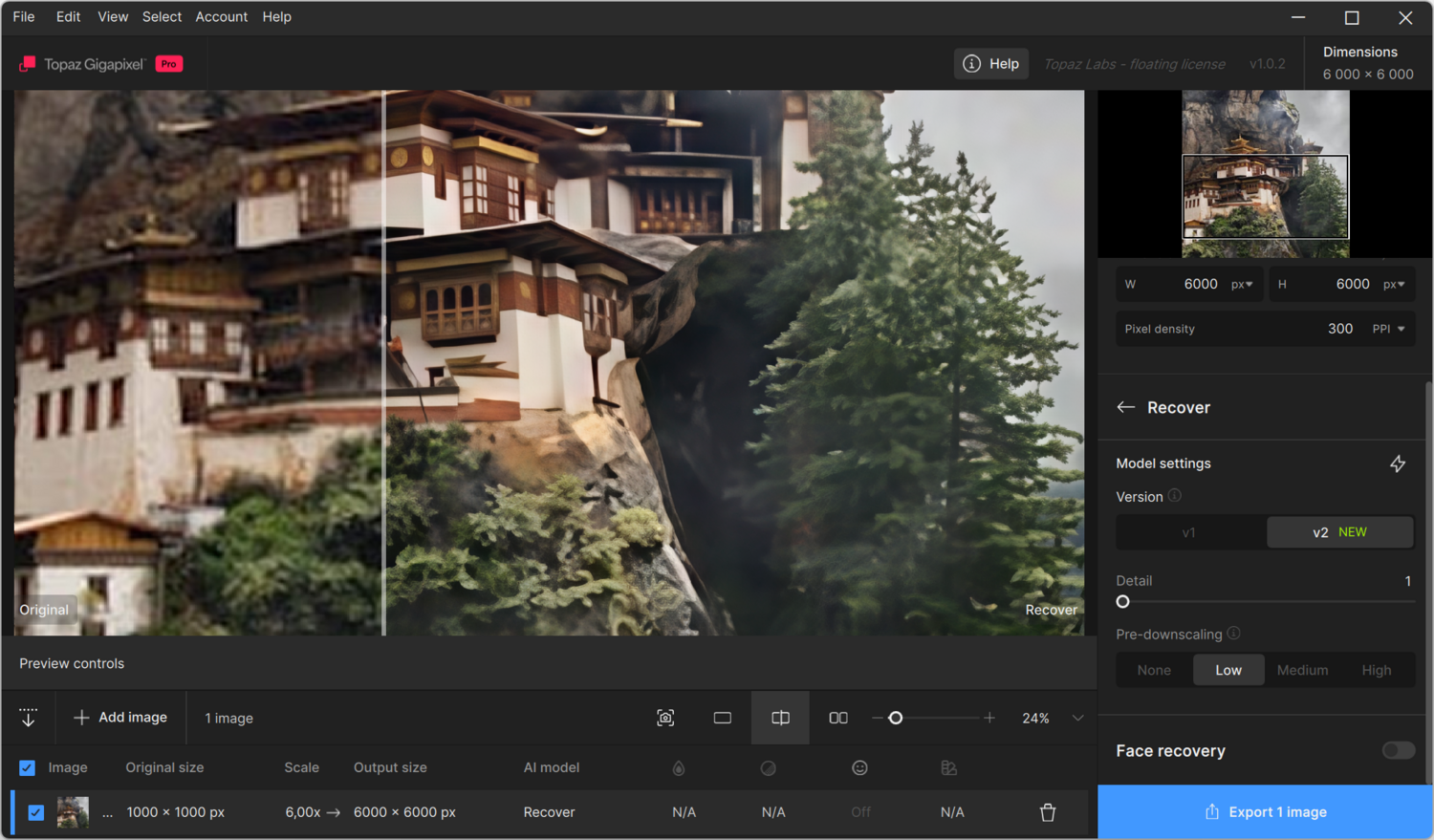 Topaz Gigapixel – это ведущий в отрасли, ИИ-усилитель изображения, который максимизирует и уровень детализации и точность к оригиналу. Это не просто создание новых пикселей, это создание правильных. Таким образом, ваши изображения будут больше и четче, не теряя деталей, с которых вы начинали.